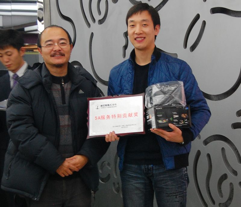 公司营销总监徐远江为2011年度5A服务明星店颁奖